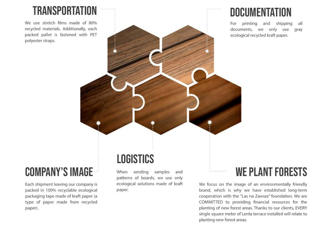 Lenta® composite boards are a new quality on the market of terrace construction materials. We offer the second generation of the composite – a premium product. Our composite terrace is a structure created with the use of modern materials and breakthrough technologies. As a comprehensive company that meets the expectations of customers, we deal with both the production and sale of composite boards, as well as the implementation of complete projects for the construction of terraces.